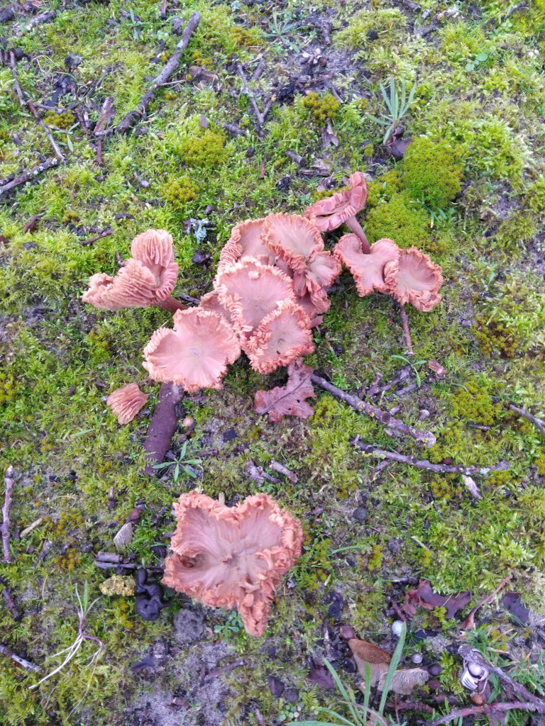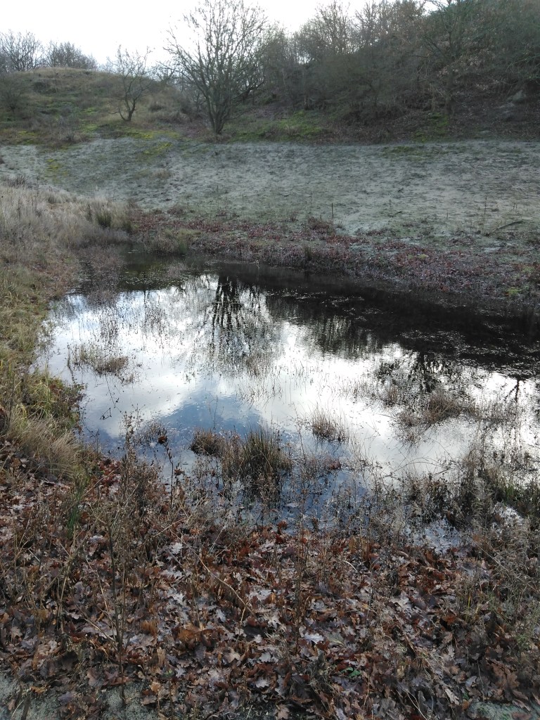 Als je om de natte pan loopt, lijkt het net of er maar één meertje is, maar het zijn meerdere meertjes. Dat kun je normaal gesproken niet zien, omdat je alleen maar met ontheffing in dat gebied mag komen. Eric heeft die ontheffing en zodoende kon hij het gebied laten zien. Bij de natte pan leeft onder andere de rugstreeppad en het is mede daarom beschermd gebied. De rugstreeppad hebben we niet gezien, maar wel een flink aantal bijzondere bomen, planten en schimmels. Hierbij wat foto’s: