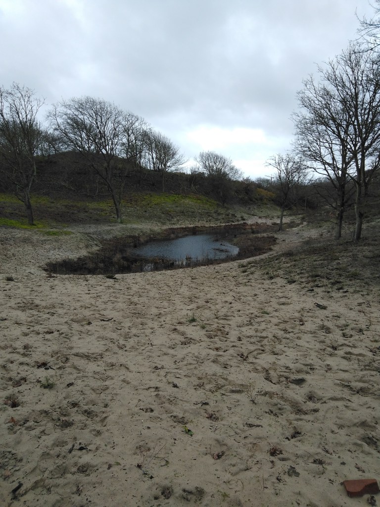 Iemand die heel veel over het Westduinpark weet, is Eric Wisse. Hij is duinconsulent bij de Stichting Duinbehoud. Eind december 2019 heeft hij mij en mijn coach Kim Voets een rondleiding gegeven langs de natte pan in het Westduinpark. Ik herinner mij dat het gebied vroeger helemaal begroeid was. Er waren toen nog bomen en planten die er normaal niet groeien. Tussen 2011 en 2013 is het gebied echter weer in de oorspronkelijke staat hersteld, wat betekent dat er meer stuifzand is. Beter is het te spreken van bijna oorspronkelijke staat. Sommige van de ‘niet oorspronkelijke’ bomen en planten zijn heel bijzonder of hebben een bijzondere geschiedenis en die zijn blijven staan, zo legde Eric uit.