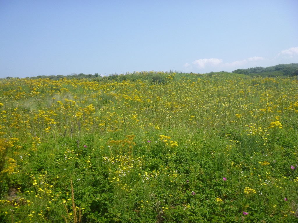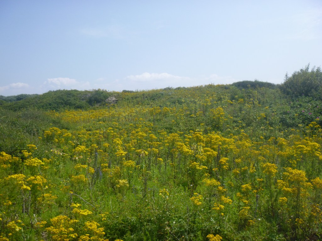Het was een aangename verrassing voor mij toen ik in juli aan het wandelen was in het Westduinpark. Ik had al gezien dat het er de afgelopen maanden door alle regen veel groener was dan de voorgaande droge jaren. Daarnaast was er nog iets gebeurd. Het was niet alleen een groene gedaanteverwisseling, het was een mix van groen, paars, wit, geel en blauw. De duinen waren veranderd in een bloemeneiland.