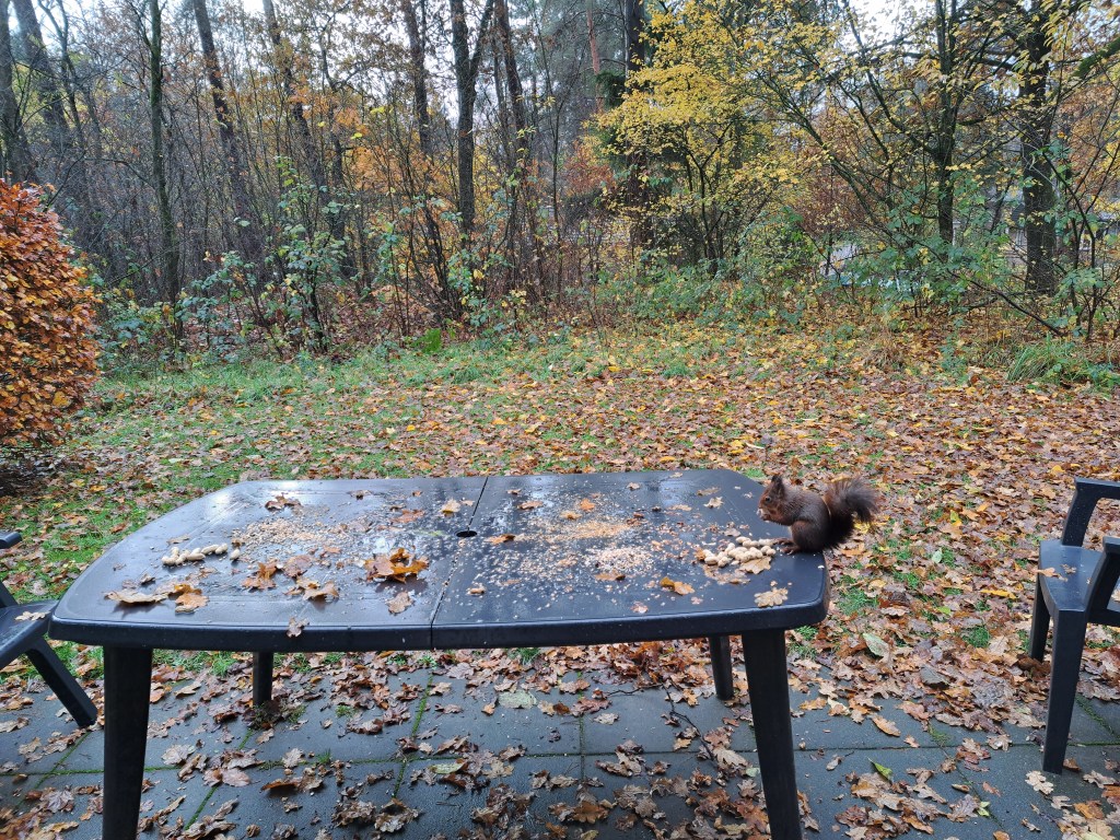 Ik had dezelfde bungalow geboekt waar ik de eerste keer dat ik op het park was geweest had verbleven. Dat was op dat moment al veertien jaar geleden. De natuur was nog steeds even mooi en het vakantiehuis was inmiddels gerenoveerd. Ik had weer vogelvoer en pinda’s gestrooid in de tuin bij het huisje. Ook had een vorige huurder van de bungalow een pot vogelpindakaas achtergelaten in de heg. De vogels en de eekhoorns wisten al snel de tuin weer te vinden.